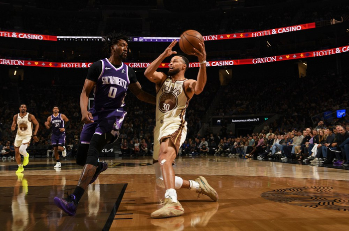 首节比赛,勇士投出不俗的三分表现,率先把握赛场主动权。库里在本节还剩下6分24秒登场,他上来就让国王连得6分逆转局势,不过他通过一记三分取得个人首次运动战进球,予以对手进攻回应。但库里遭到严防外线手感并不好,单节三分3中1,勇士最后2分37秒没有任何运动战进球,被国王在首节取得2分领先。